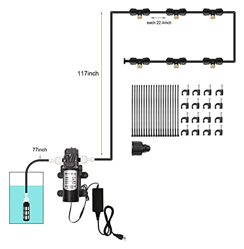 20Feet Misting System: eenvoudige installatie in minuten;Aangebracht met zadelklemmen of kabelbinders.Het kan werken met uw 3/4 “waterkraan (pakket omvatten een 3/4” vrouwelijke connector.) Als u geen stroomvoorziening hebt om te krijgen, kan het OK zijn als uw waterkraan een normale druk heeft.
