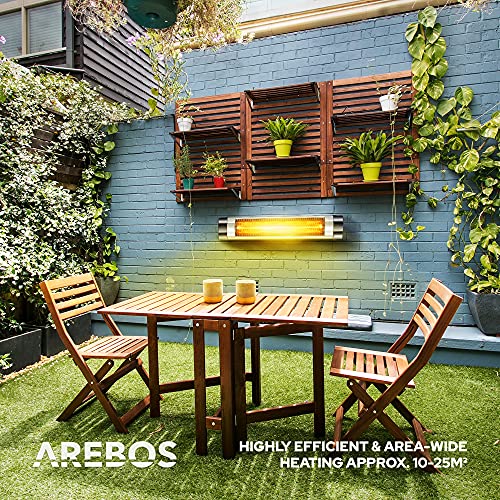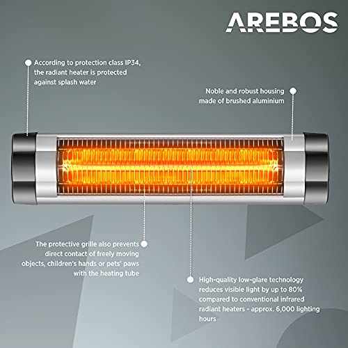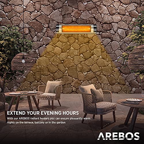 Arebos Infrarood warmtestraler | 2500 W | regelbare thermostaat | IP34 beschermingsgraad | Low-Glare-technologie…