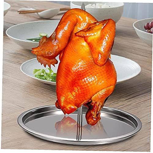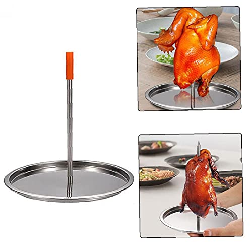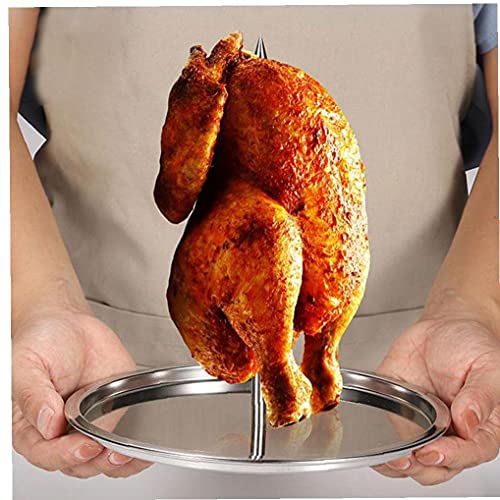 Kippenroosterrek gemaakt van zwaar roestvrij staal, het is zeer sterk en duurzaam. Eenvoudig te monteren en te demonteren. Met een ergonomisch ontwerp kan het kippenrek kip opstaan om vet naar beneden te laten druppelen, waardoor het gemakkelijk is om de kip uit het rek te verwijderen.