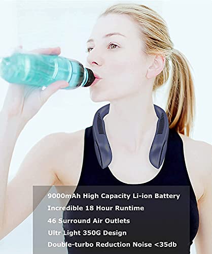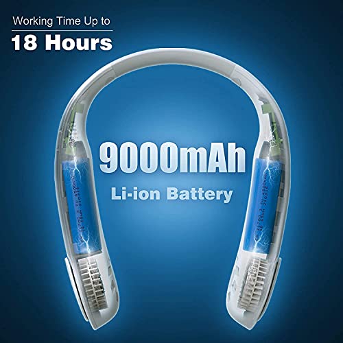 Specification: Draagbare nekventilator, 9000mAh oplaadbare persoonlijke ventilator, Blaiseloze nekventilator, 18 uur Run Time Low Noise…