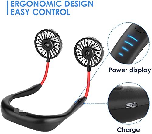 Oplaadbaar: de nekventilatorkoeling is uitgerust met een ingebouwde oplaadbare batterij en een USB oplaadkabel. De mini-draagbare ventilator die volledig is opgeladen in 2 uur kan gedurende 4-8 uur continu werken. Het kan de mini-ventilator gemakkelijk opladen via computers, laptops, Mobiele voedingen, USB Aanwijzers, adapters voor mobiele telefoons, autoladers, enz.