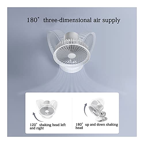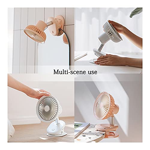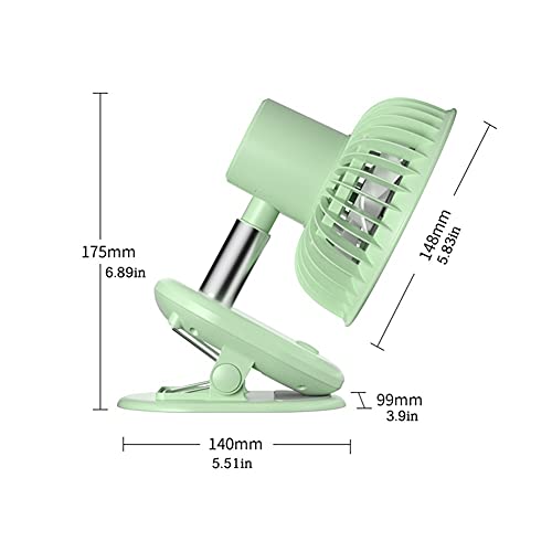 4 Verstelbare windsnelheden: 4 snelheidsopties, u kunt de meest comfortabele temperatuur voor uzelf kiezen volgens uw voorkeuren. De mini-clipfan schudt zijn hoofd 120 graden naar links en rechts en schudt zijn hoofd 180 graden op en neer en zei afscheid van de eenzijdige wind.
