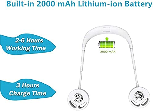 Oplaadbaar: de nekventilatorkoeling is uitgerust met een ingebouwde oplaadbare batterij en een USB oplaadkabel. De mini-draagbare ventilator die volledig is opgeladen in 2 uur kan gedurende 4-8 uur continu werken. Het kan de mini-ventilator gemakkelijk opladen via computers, laptops, Mobiele voedingen, USB Aanwijzers, adapters voor mobiele telefoons, autoladers, enz.