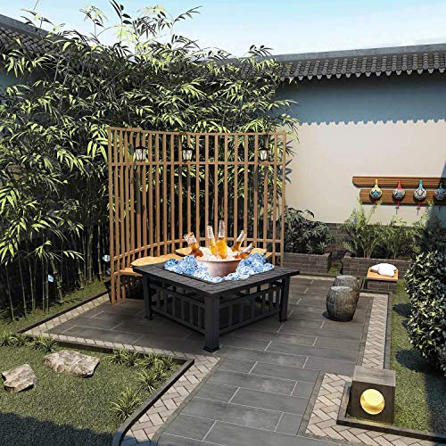 【Inhoud levering】Het pakket bevat grillrooster, vuurschaal, vuurrooster, poker, bougieafdekking en waterdichte afdekking. Het pokergereedschap is nuttig bij het aansteken van het vuur. En de waterdichte beschermhoes beschermt de vuurschaal perfect tegen stof, bladeren en regen.