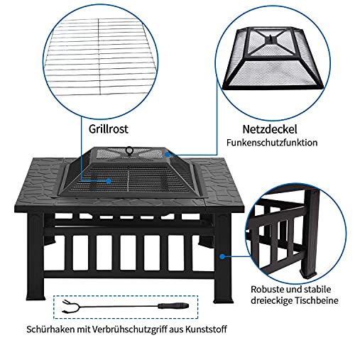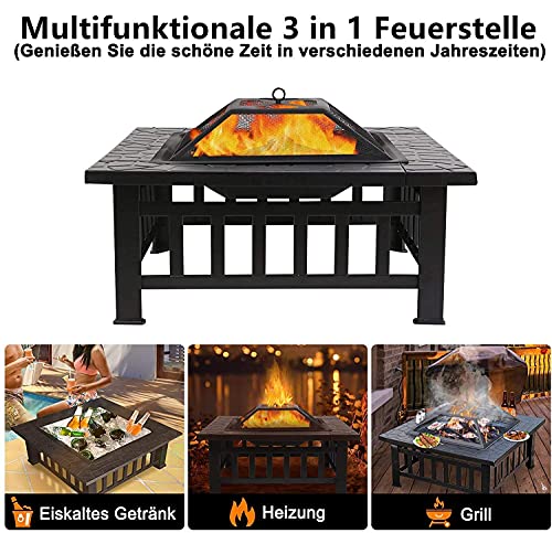 Joycelzen Brasero Exterieur pour Jardin, Foyer Carré 3 en 1 Poêle Chauffant for Heating, BBQ, Outdoor, Beach, Patio…