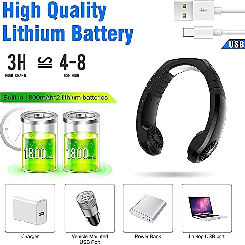 Oplaadbaar: de nekventilatorkoeling is uitgerust met een ingebouwde oplaadbare batterij en een USB oplaadkabel. De mini-draagbare ventilator die volledig is opgeladen in 2 uur kan gedurende 4-8 uur continu werken. Het kan de mini-ventilator gemakkelijk opladen via computers, laptops, Mobiele voedingen, USB Aanwijzers, adapters voor mobiele telefoons, autoladers, enz.
