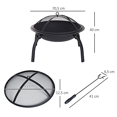 Outsunny vuurschaal vuurkorf haard met vonkbescherming inklapbaar tuin 55 cm zwart 70,5 x 70,5 x 40 cm