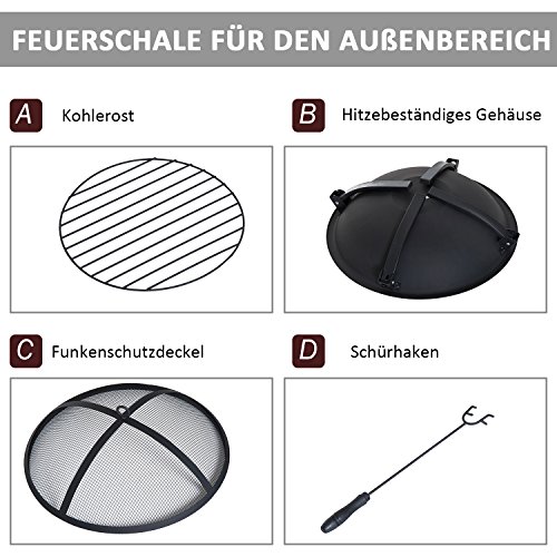 Specification: Outsunny vuurschaal vuurkorf haard met vonkbescherming inklapbaar tuin 55 cm zwart 70,5 x 70,5 x 40 cm
