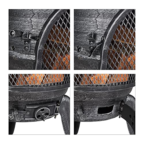 Relaxdays Aztekenkachel met pookhaak, gietijzer, vonkbescherming, voor tuin, h x b x d: 112 x 46 x 48 cm, zilver