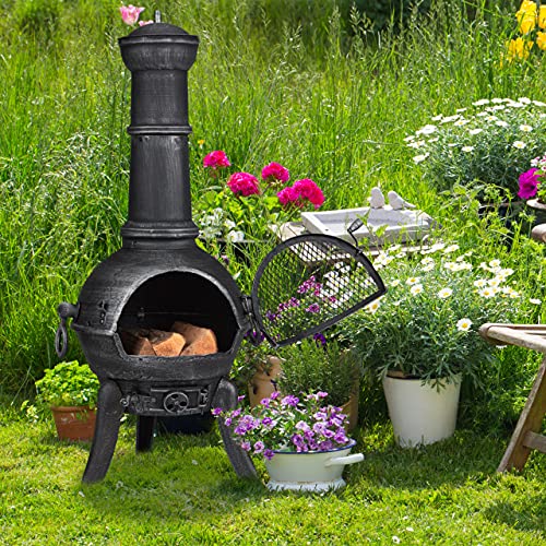 Stabiel: de robuuste tuinoven van gietijzer en staal is zeer stabiel – h x b x d: ca. 112 x 48 x 46 cm