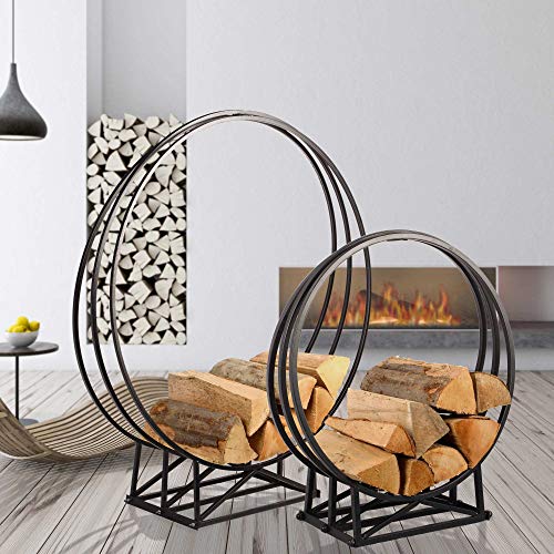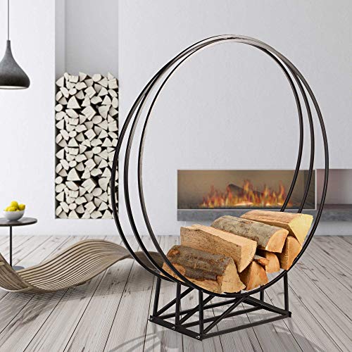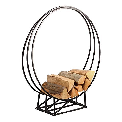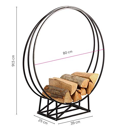 Specification: RM Design Brandhoutrek voor binnen en buiten, 80 cm brede brandhoutstandaard, vuurhout, rond, metaal, zwart