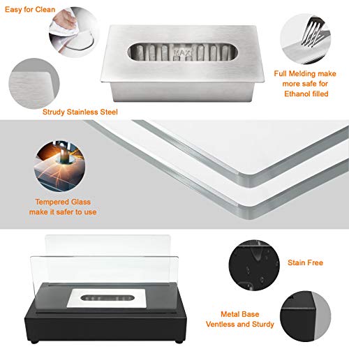 Deze open haard met 0,5L ethanol brandstofbrander, 2 gehard glas ruiten en 1 snuffer tool, produceert 2.000 BTU’s om een kamer van 250 m² te verwarmen. ft.