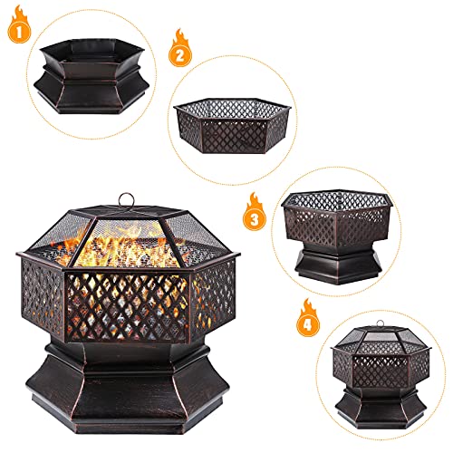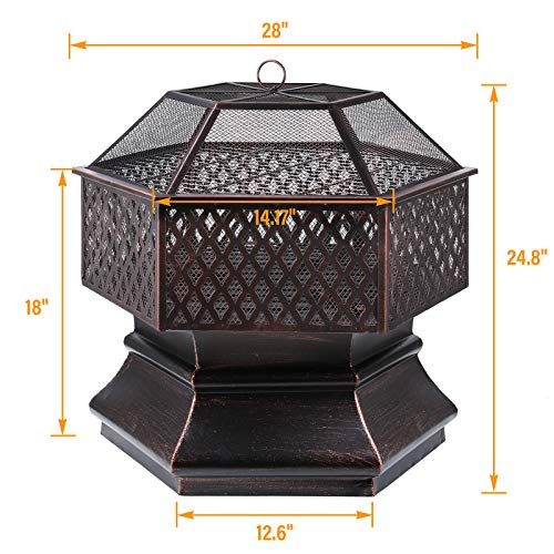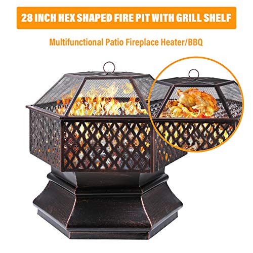 Eenvoudig te monteren en complete accessoires: vuurschaal is licht, eenvoudig te monteren, eenvoudig te transporteren en gemakkelijk te reinigen. Volgens de gebruiksaanwijzing kan de haard snel worden gemonteerd. Inhoud: 1 zeshoekige vuurschaal (28 inch), 1 grillrooster, 1 kolenrooster, 1 pookhaak, 1 beschermingsrooster