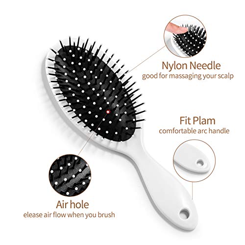 – Nylon pinnen en ontklitter ballen glijden door elk type haar dat moeiteloos in de war komt zonder te trekken, unieke configuratie helpt haarbreuk te voorkomen, verzegelt in gespleten uiteinden en vermindert kroezen gemakkelijk.