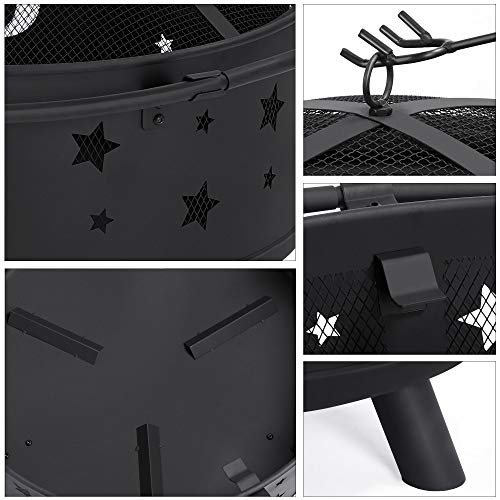 Specification: Yaheetech Ronde vuurschaal, kolenbak & terrasoven voor verwarming, outdoor terras, vuurkorf, Ø x h: 76 x 50 cm, ster- en…