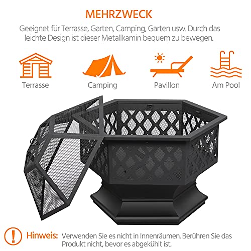 Specification: Yaheetech Zeshoekige vuurschaal 61 x 62 cm, vuurschaal met vonkenbeschermingsdeksel, vuurkorf voor tuin, outdoor…