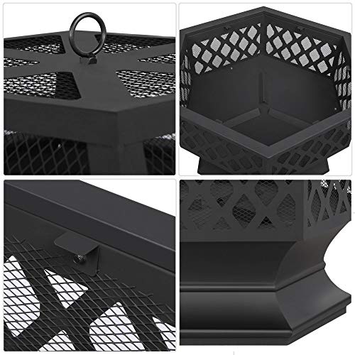 Specification: Yaheetech Vuurkorf met vonkbescherming en pookhaak, metalen vuurschaal voor tuin & terras, hexagon vuurkorf Fire Pit…